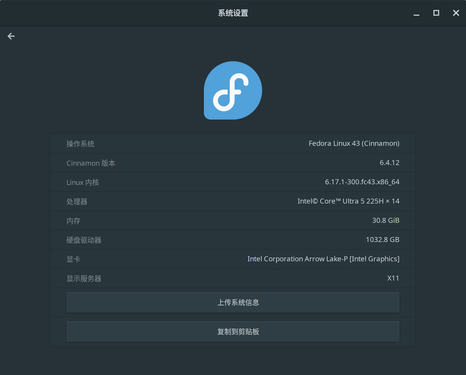 插入一个小插曲:我想直接用 fcitx5 的,然后把 ibus 卸载。结果卸载 ibus 的时候用了 sudo dnf remove ibus*,我是万万没想到现在都在往 Wayland 方向发展,我还以为还在用 X11,卸载的时候没看直接 y 了,整个桌面都没了。只能说我被 Arch 鞭打太多次了已经习惯了, 直接 sudo dnf install @cinnamon-desktop-environment 重新安装 Cinnamon 桌面环境,重启之后 sudo systemctl enable lightdm.service && sudo systemctl start lightdm.service 就好了。